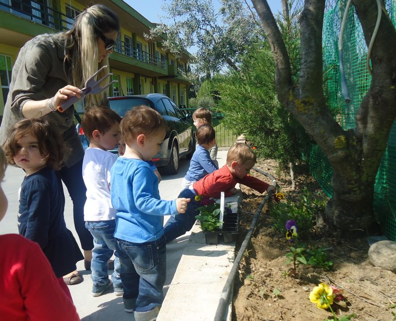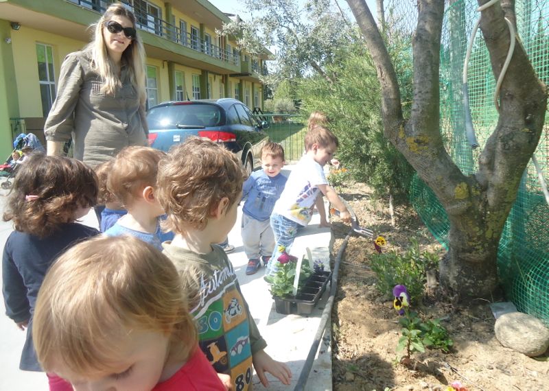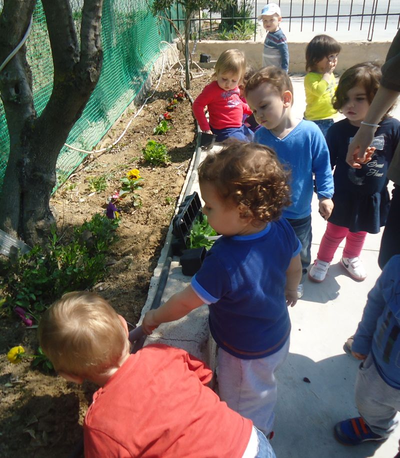 Τα βρεφάκια φυτεύουν ανοιξιάτικα λουλουδάκια στην αυλή της Παιδικής Μελωδίας